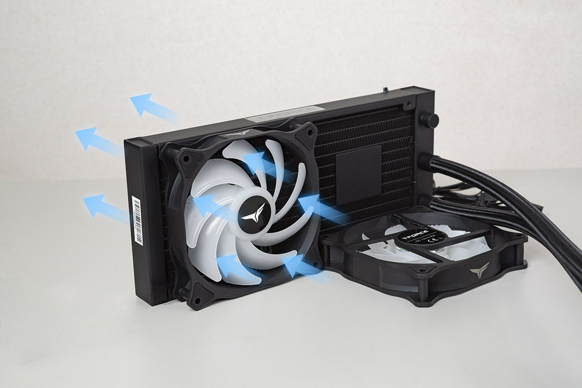 The AIO liquid CPU cooler alone can't cool down the entire PC. The PC itself must be equipped with other fan products to achieve an effective cooling effect. A quick tip, if you really forget which side is air intake and which side is the exhaust, try pushing the blades hard to feel the wind flow.