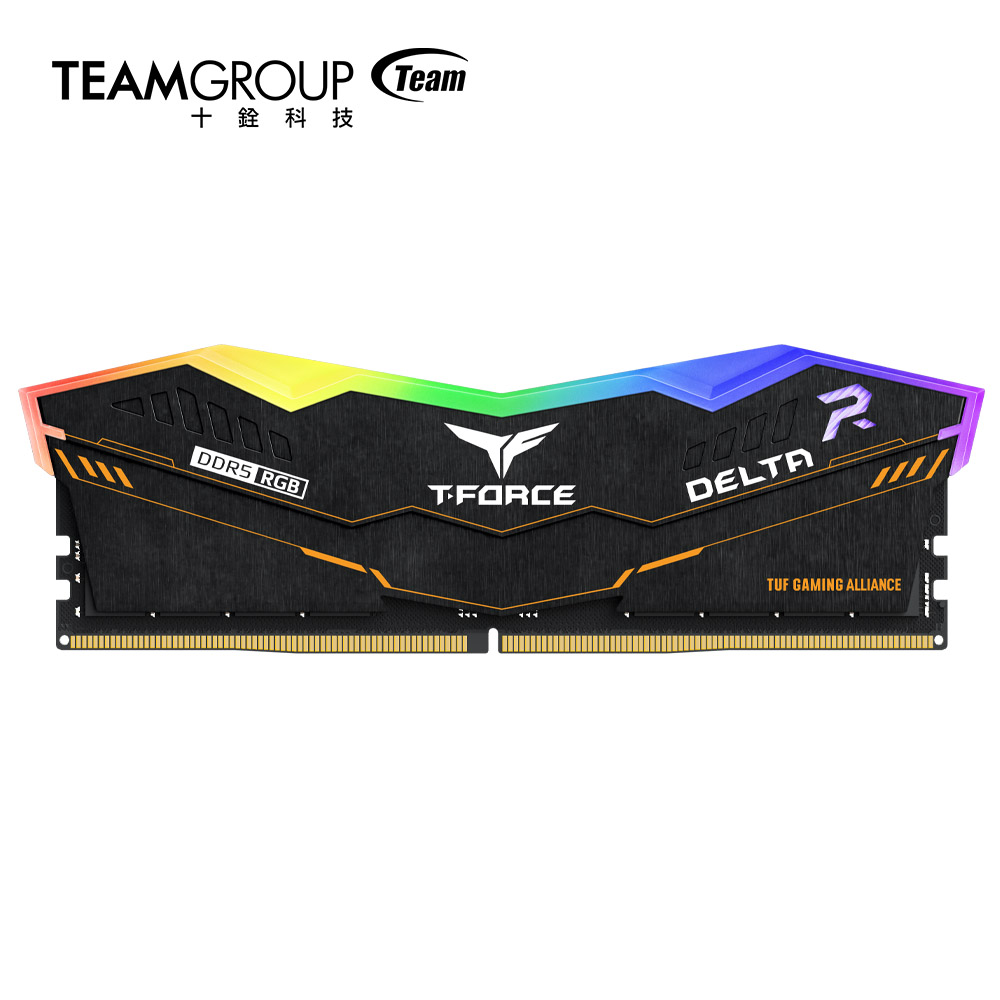 T-FORCE DELTA TUF Gaming Alliance RGB DDR5桌上型電競超頻記憶體是首款經ASUS TUF Gaming Alliance認證及嚴格測試之DDR5 RGB電競超頻記憶體,外型設計上採用隱形戰鬥機的意象優化整體外觀,且融合TUF Gaming Alliance獨特電競特工風格元素,搭配全幅式120°超廣角RGB炫彩發光並支援ASUS Aura Sync燈控軟體,讓玩家可隨心所欲變換燈效,打造獨特光彩奪目的RGB 系統。本產品首波開賣規格為5200MHz頻率及雙通道2x16GB的大容量,飆速魅力剽悍登場。